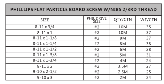 Phillips Flat Particle Board Screw